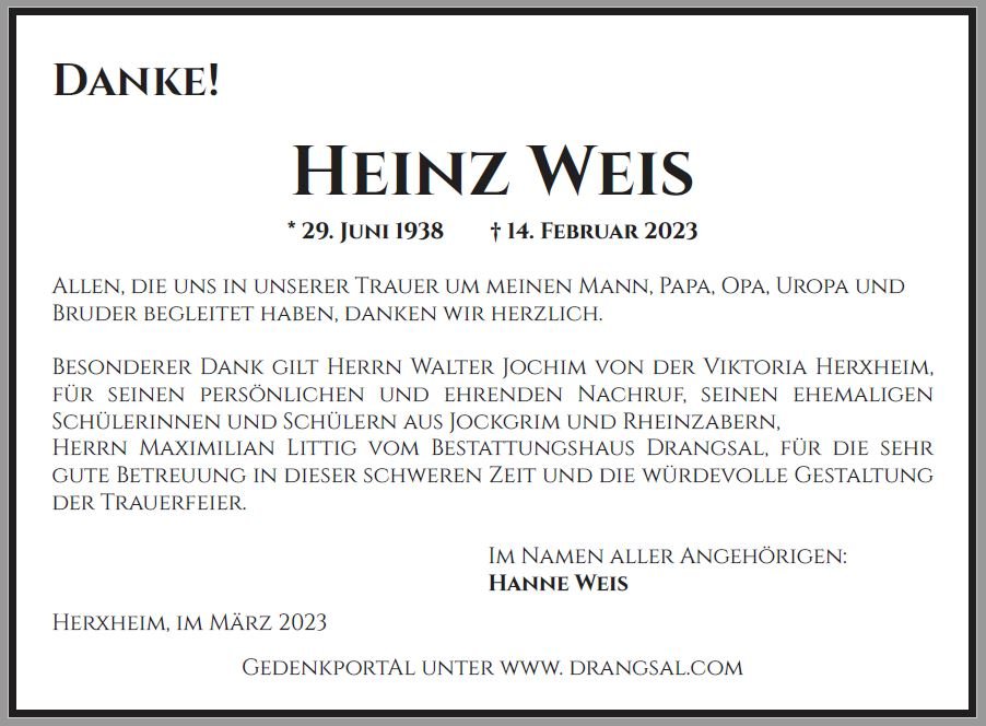 Heinz Weisgestorben am 14. Februar 2023