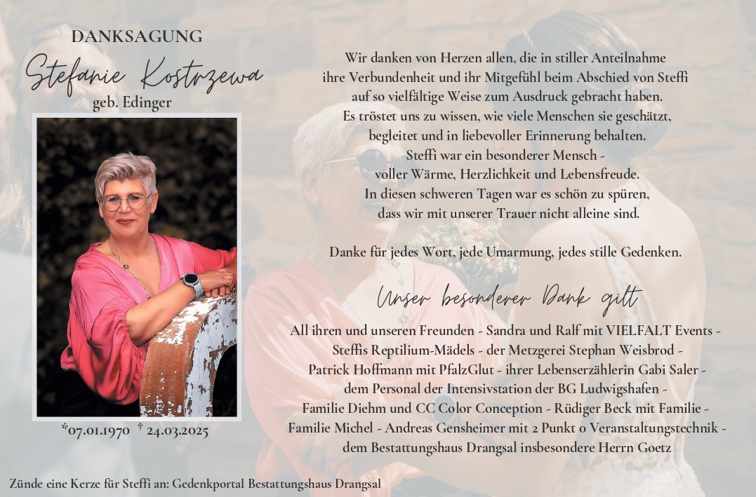 Steffi wir vermissen deine herzliche Art und die Gespräche mit dir.